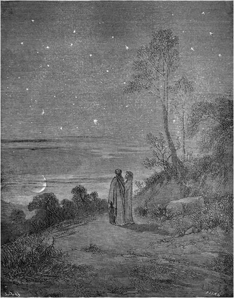 Notable, too, is the language with which they address each other, not by name but by station: Virgil, the shade whose life work has been Dante's strongest influence, is "My Master," and then in time, "My Father," while Dante, when called anything, is "My Son."
